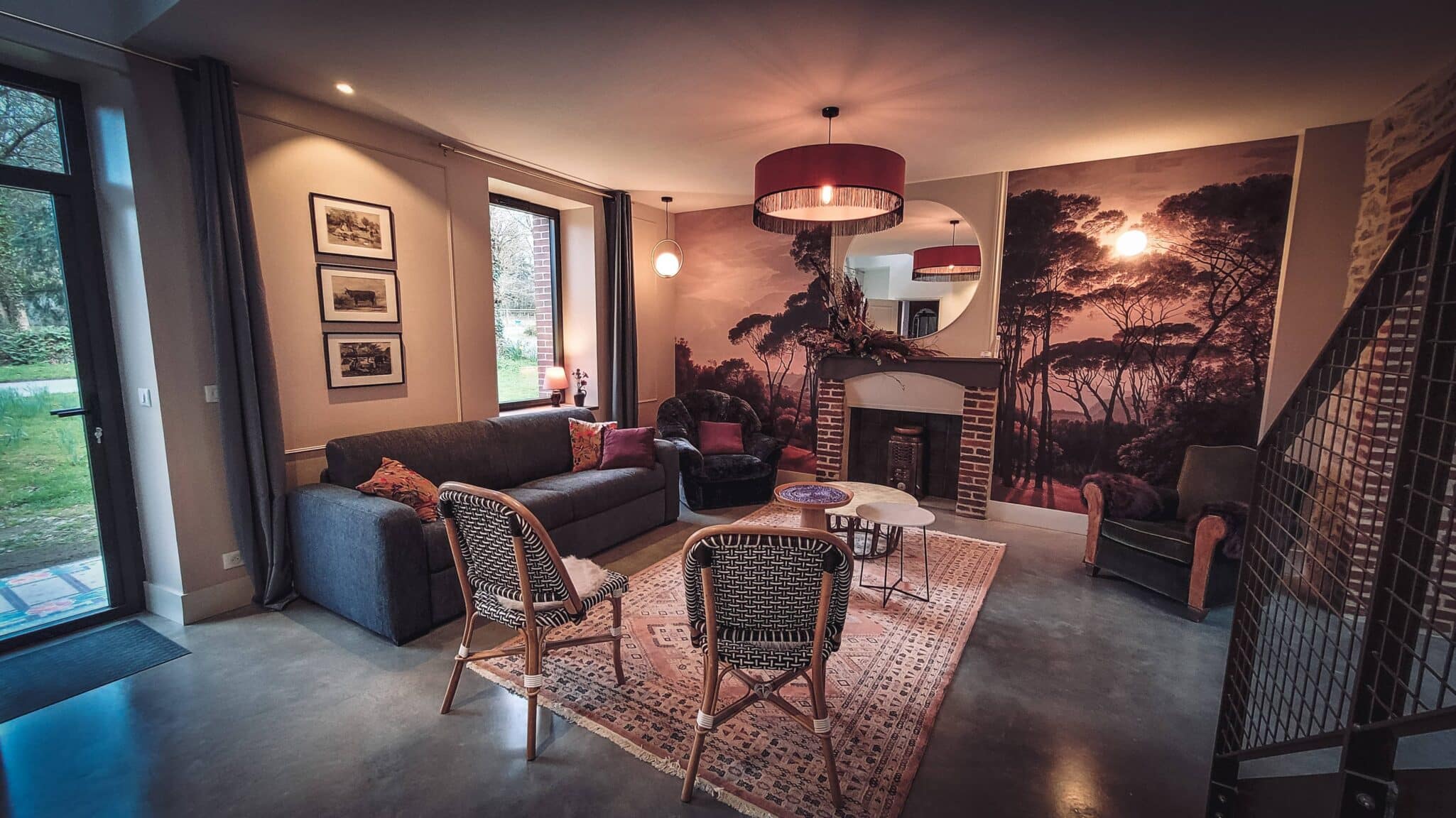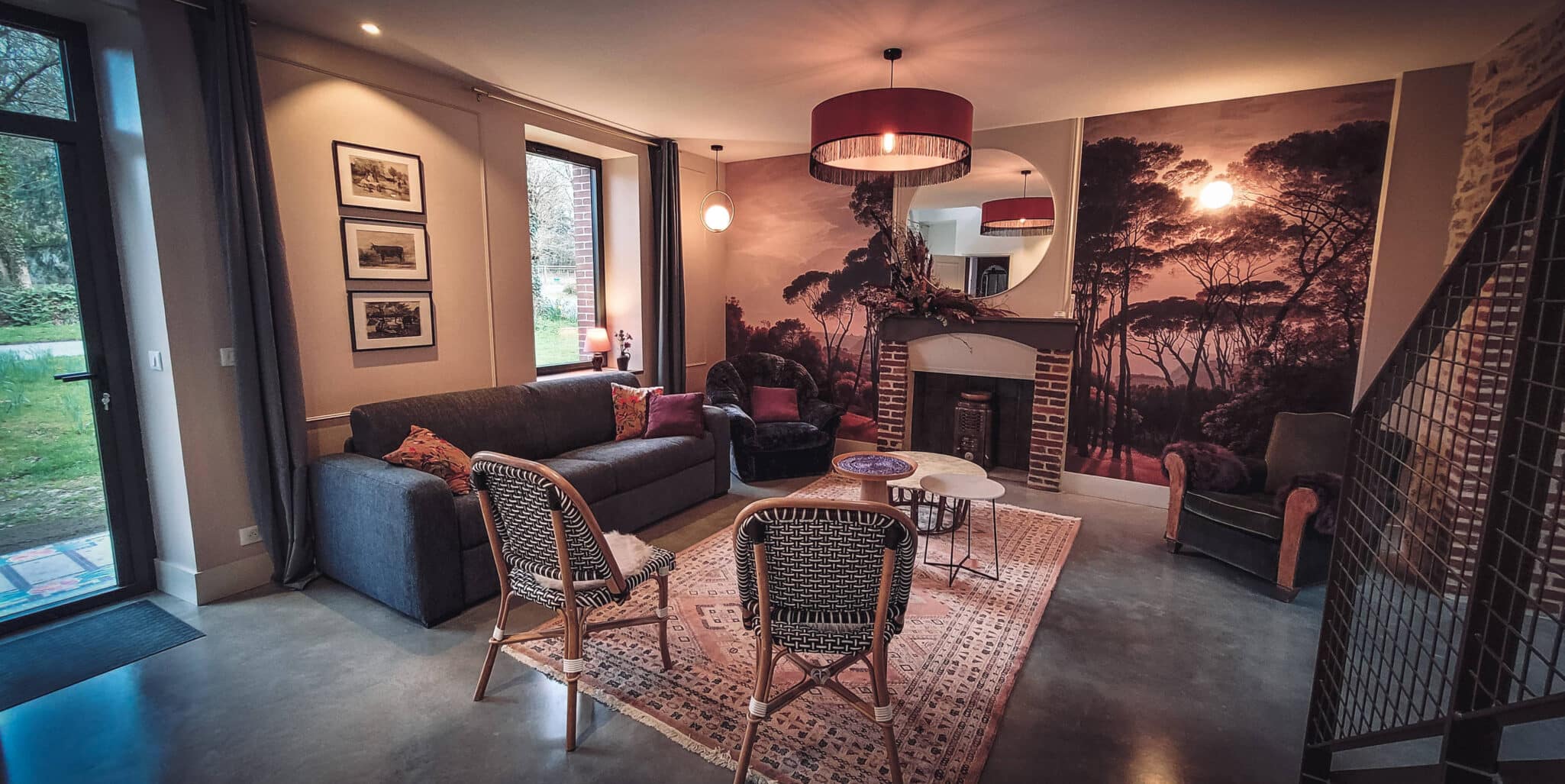 Chaque espace a été rénové avec soin pour offrir confort et authenticité, avec des vues sur le parc et la nature environnante.